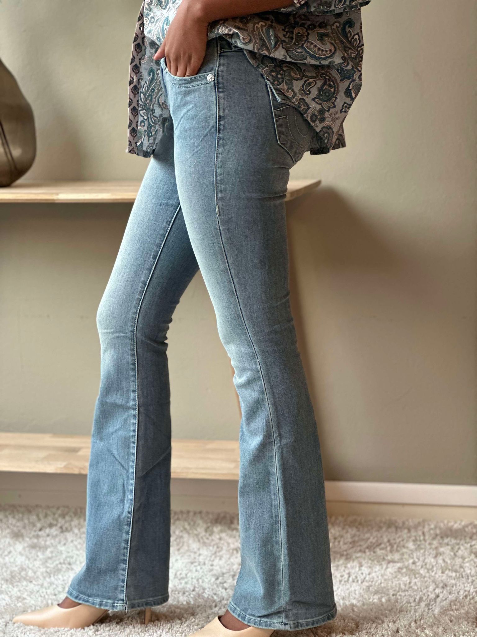 Becca Mid Rise Boot Cut Flap - Lys Denim Blå